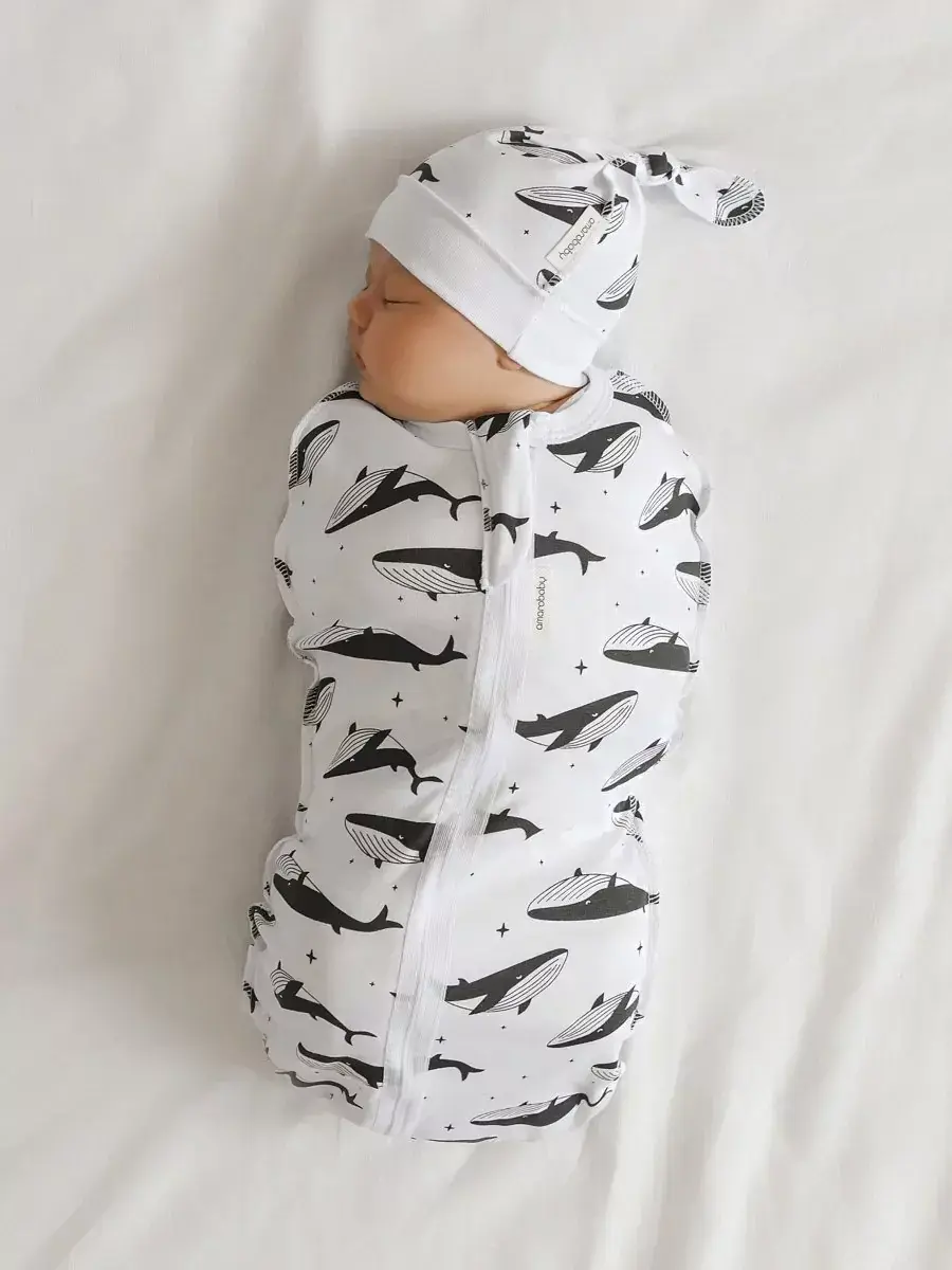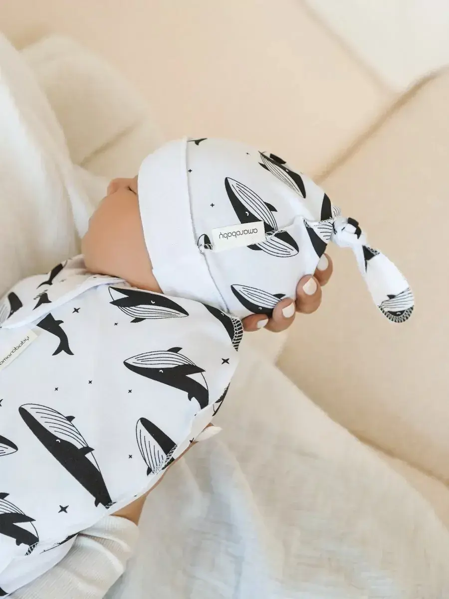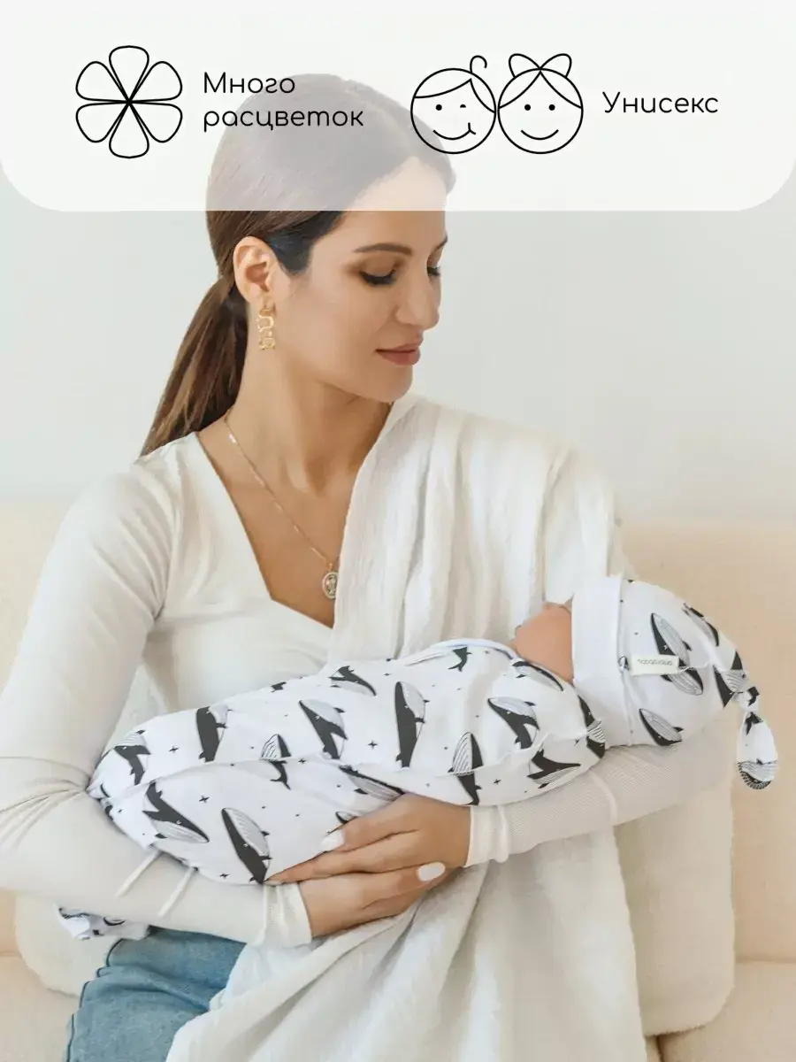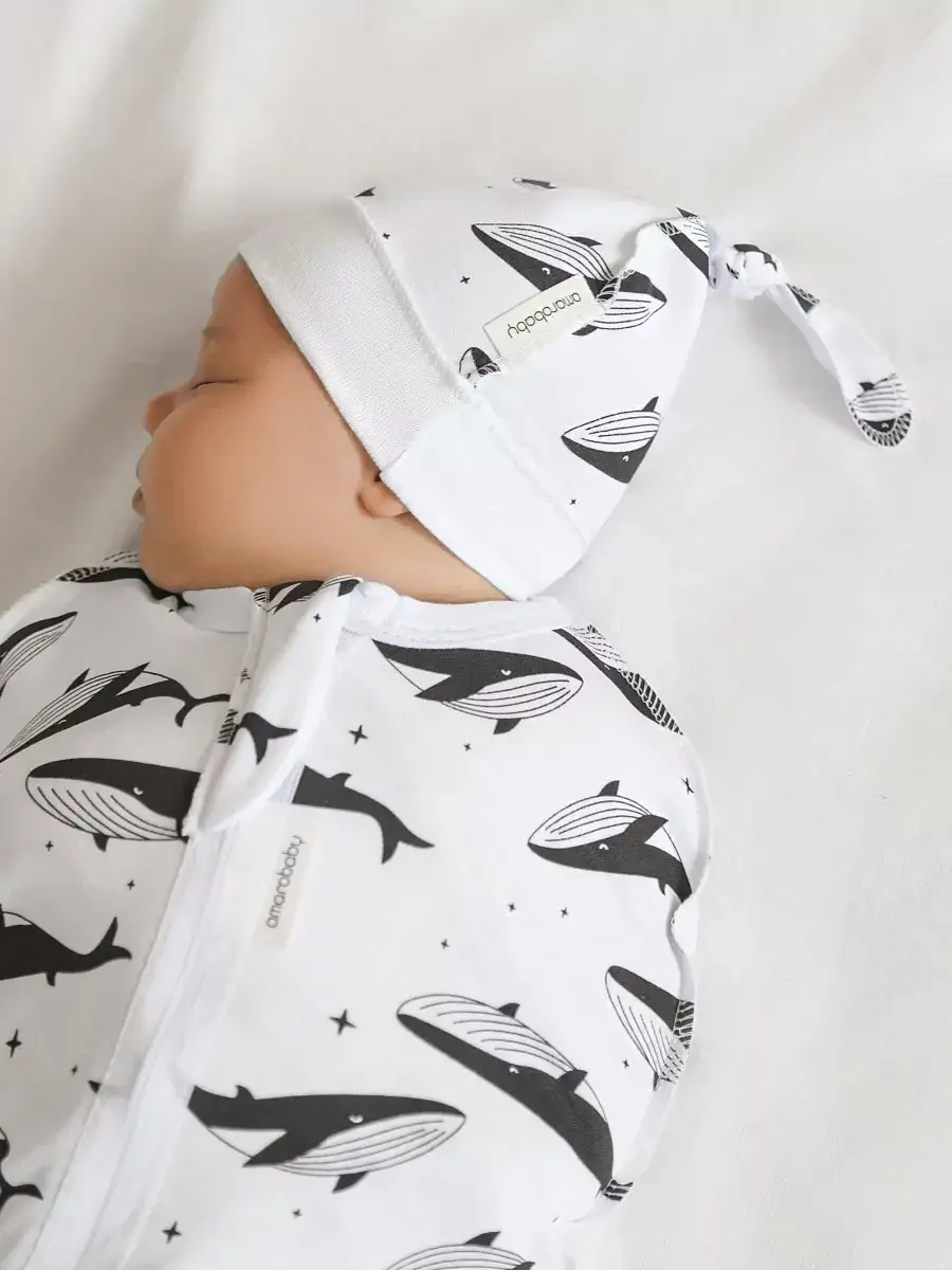 Пеленка-кокон детская Amarobaby Soft Hugs Киты / AMARO-5701SH2-KI-68 (р.68-74)