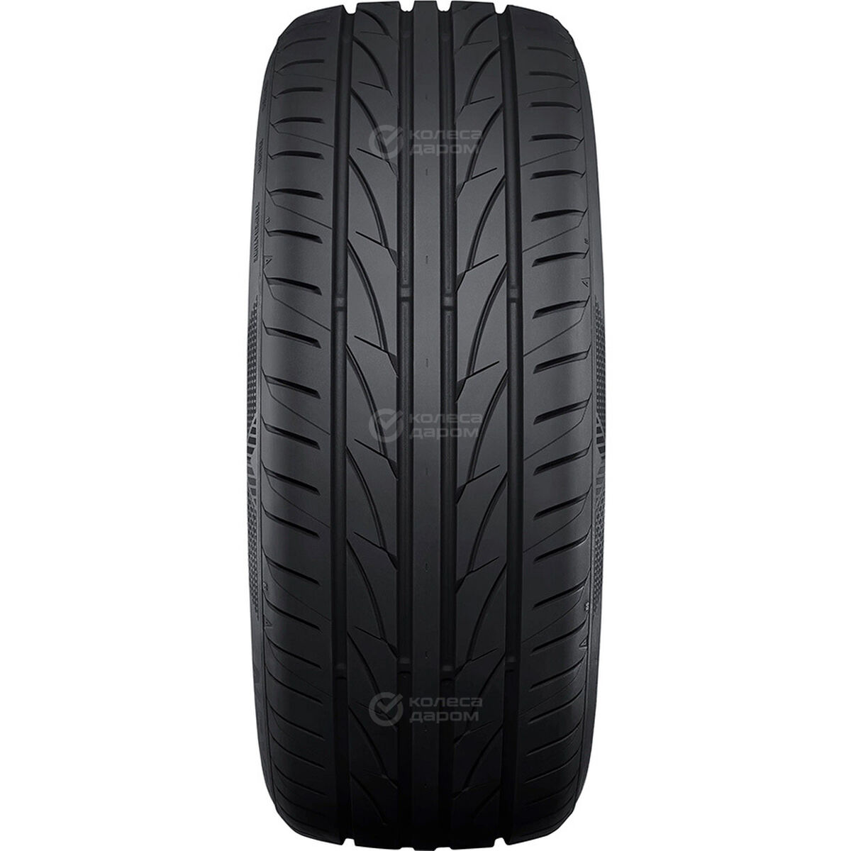 В центре симметричного направленного протектора расположено сплошное продольное ребро. Оно обеспечивает стабильность при прямолинейном движении. Справа и слева от него — крупные сдвоенные блоки, которые отделены друг от друга диагональными изогнутыми ламелями. Такой дизайн улучшает динамику разгона и эффективность торможения.