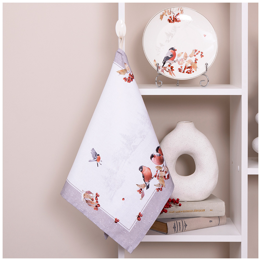ПОЛОТЕНЦЕ "ЛЕСНАЯ СКАЗКА.СНЕГИРИ"40Х60СМ 100%ХЛОПОК,СЕРЫЙ,ТВИЛ 850-744-62