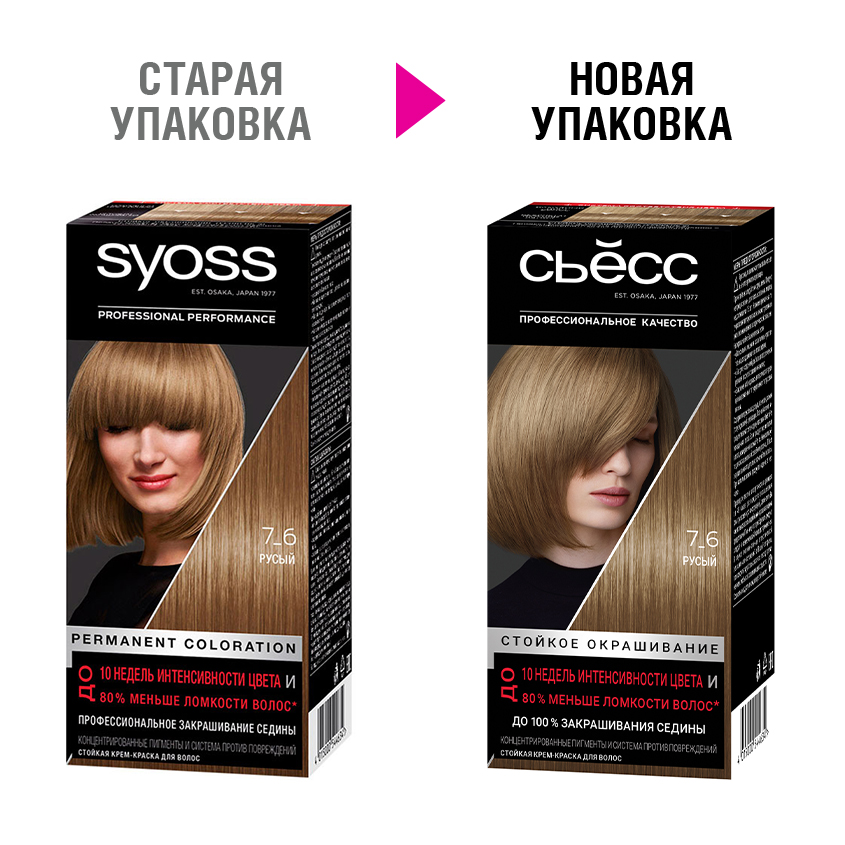 Стойкая крем-краска для волос СЬЁСС Русый 7_6 с концентрированными цветовыми пигментами и системой против повреждений. Пигменты красителя глубоко проникают в волокна волоса, позволяя добиться ИНТЕНСИВНОСТИ ЦВЕТА ДО 10 НЕДЕЛЬ и ПРОФЕССИОНАЛЬНОГО ЗАКРАШИВАНИЯ СЕДИНЫ. Ухаживающая технология SALONPLEX реставрирует повреждённые связи в структуре волоса и восстанавливает волосы изнутри. Формула с кератином покрывает кутикулу волос, делая их более мягкими и гладкими. Для ВИЗУАЛЬНО УЛУЧШЕННОГО КАЧЕСТВА ВОЛОС* и ДО 80 % МЕНЬШЕ ЛОМКОСТИ ВОЛОС*. Подходит для волос от светло-русых до тёмно-русых оттенков. Для волос с содержанием седины не более 50 %. Стойкое окрашивание.