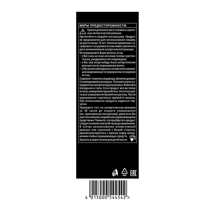 ВНИМАНИЕ: Цвет окрашивающей смеси некоторых оттенков меняется во время нанесения. Это не влияет на результат окрашивания.