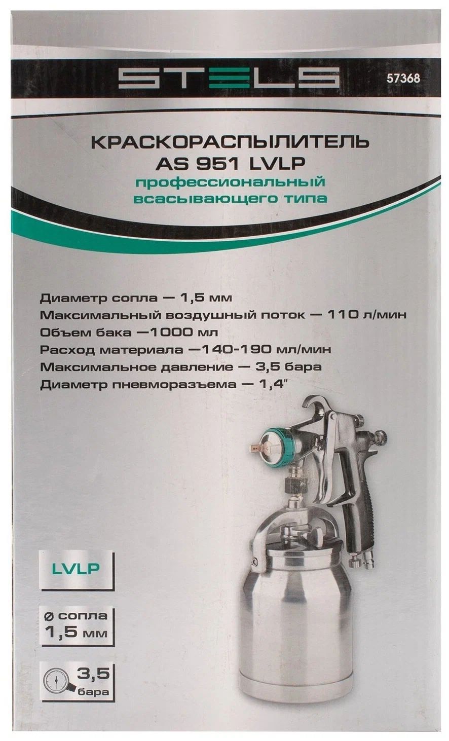 Описание товара Краскораспылитель AS 951 LVLP, профессиональный, всасывающего типа, сопло 1,5 мм// Stels