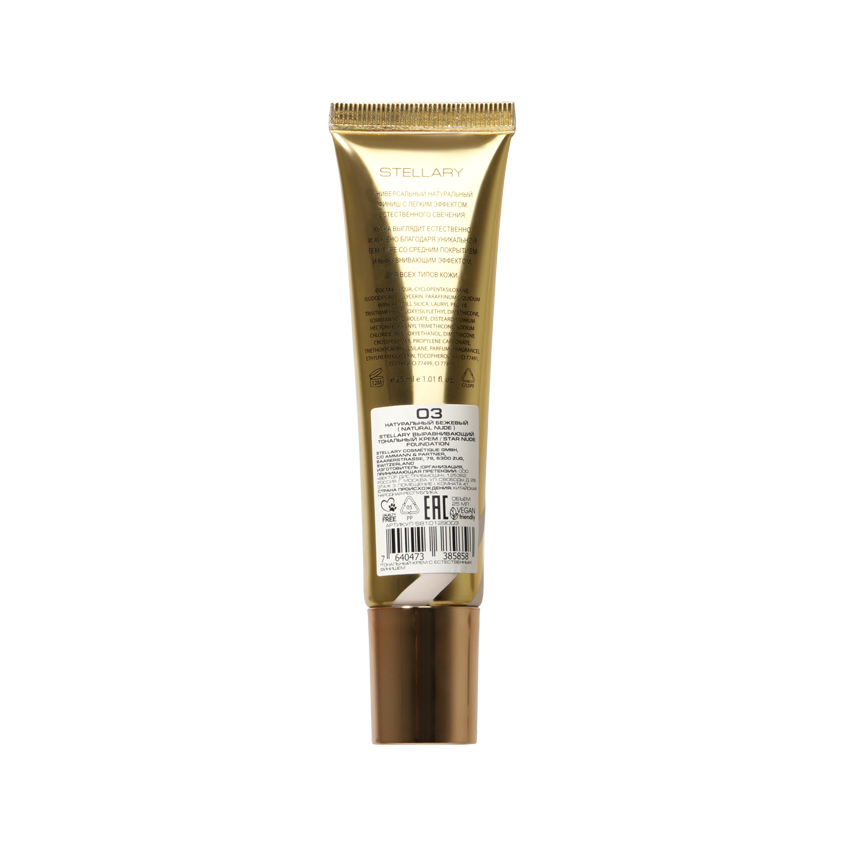 Универсальный тональный крем STAR NUDE с натуральным сатиновым финишем и средней укрывистостью — роскошная база, доступная каждой. Это прочная основа для создания макияжа с идеально ровным тоном кожи без несовершенств и лишнего блеска. Продукт с кремовой текстурой придает коже естественный ухоженный вид с легким натуральным свечением. Эффект выравнивания кожи достигается за счет текстуры со средним покрытием.