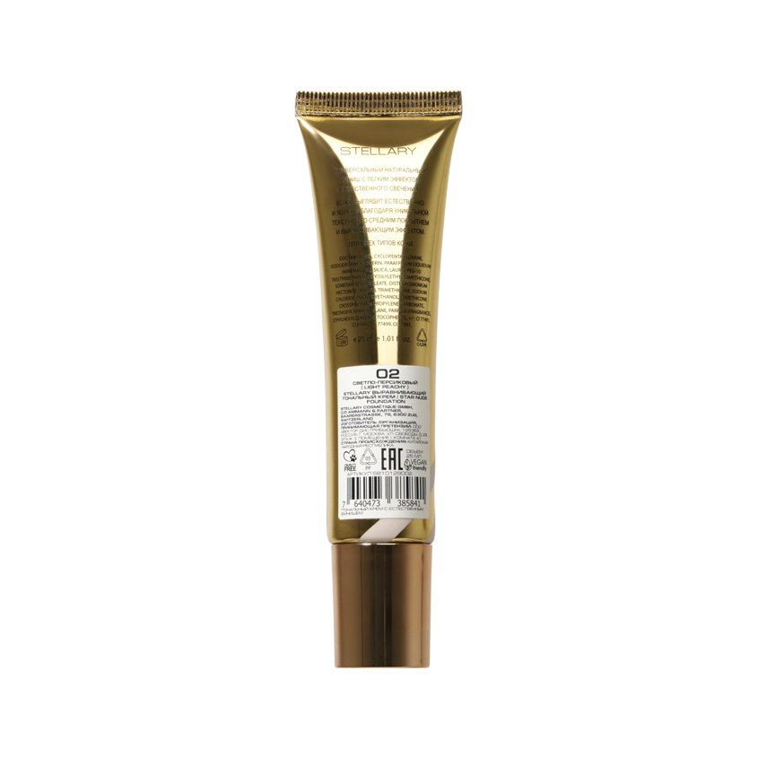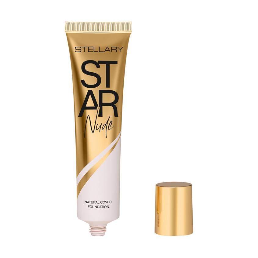 STAR NUDE представлен в четырех оттенках: 01 слоновая кость, 02 светло-персиковый, 03 натуральный бежевый, 04 песочный. Тональный крем упакован в мягкую тубу с крышкой с запоминающимся дизайном и золотыми глянцевыми деталями.