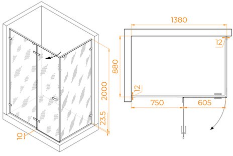 Тип кабины - Прямоугольный душевой уголок для углового монтажа
