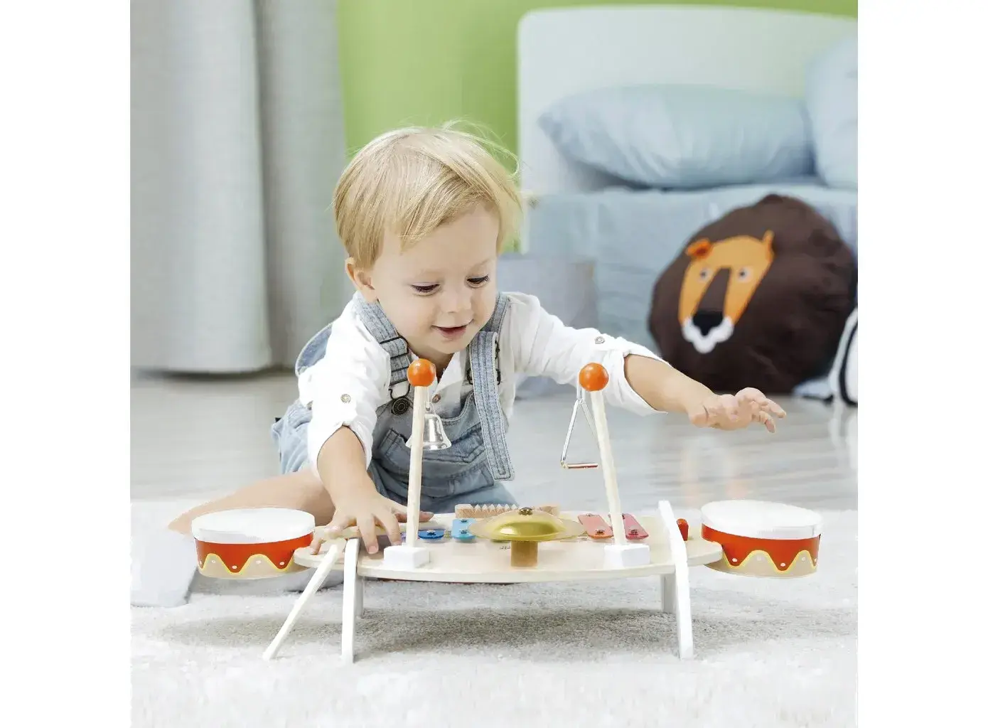 - Музыкальные инструменты в наборе барабан, треугольник, ксилофон, колокольчик, трещотка