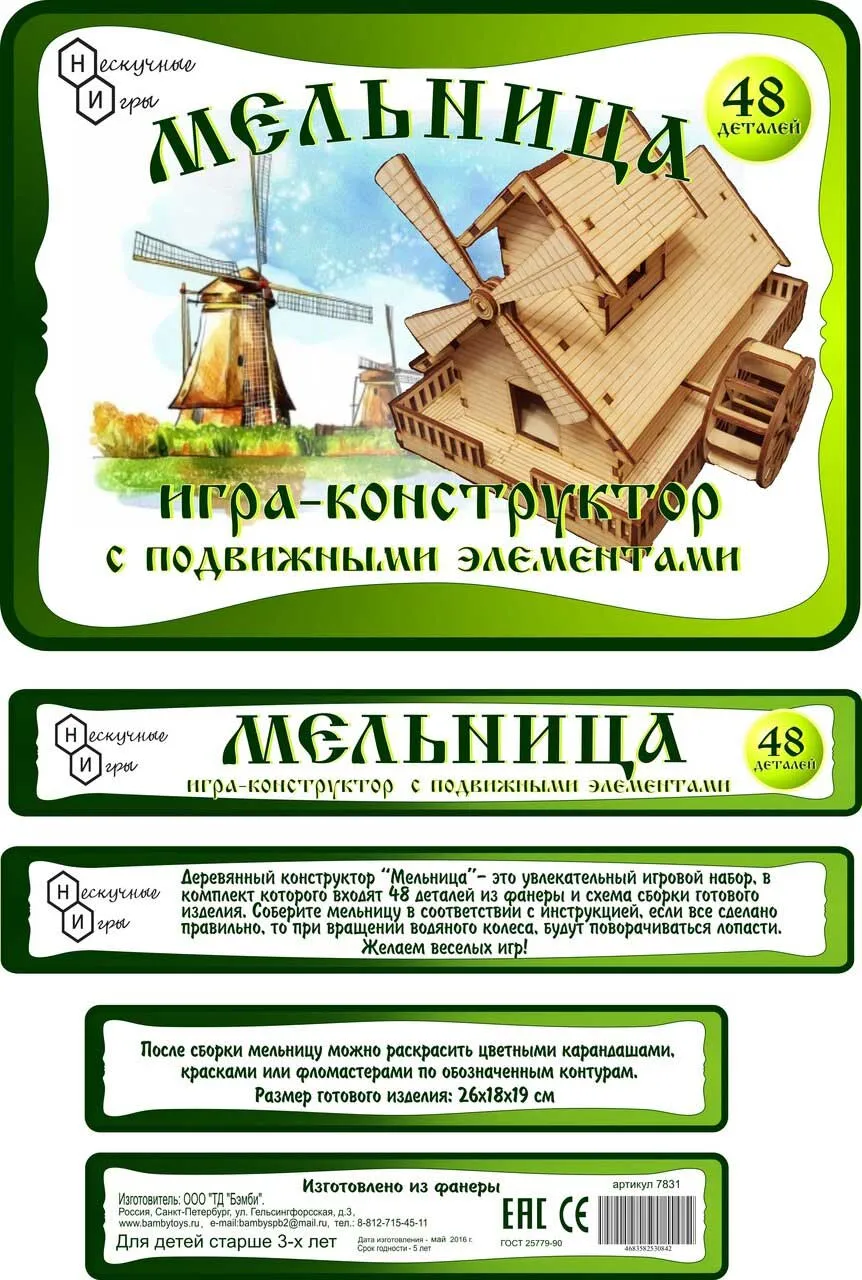 Описание товара Игра-конструктор Нескучные игры "Мельница" 48 дет. арт.7831 с движущимися элементами