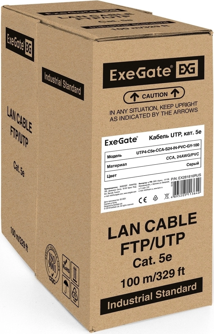 Кабель Exegate UTP4-C5e-CCA-S24-IN-PVC-GY-100 UTP