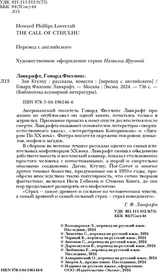 Зов Ктулху. Рассказы. Повести 9785041961466 (Лавкрафт Г.Ф.)