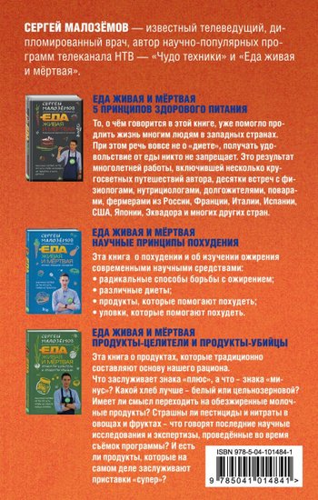 - Коллекция бестселлеров ведущего программы «Еда живая и мёртвая» на телеканале НТВ Сергея Малозёмова. Книги, из которых можно узнать всё о принципах здорового питания, получить полезную информацию о продуктах, которые составляют наш ежедневный рацион. Автор расскажет о продуктах, помогающих продлить молодость организма и не прибавить в весе. Коллекция бестселлеров ведущего программы «Еда живая и мёртвая» на телеканале НТВ Сергея Малозёмова. Книги, из которых можно узнать всё о принципах здорового питания, получить полезную информацию о продуктах, которые составляют наш ежедневный рацион. Автор расскажет о продуктах, помогающих продлить молодость организма и не прибавить в весе.
