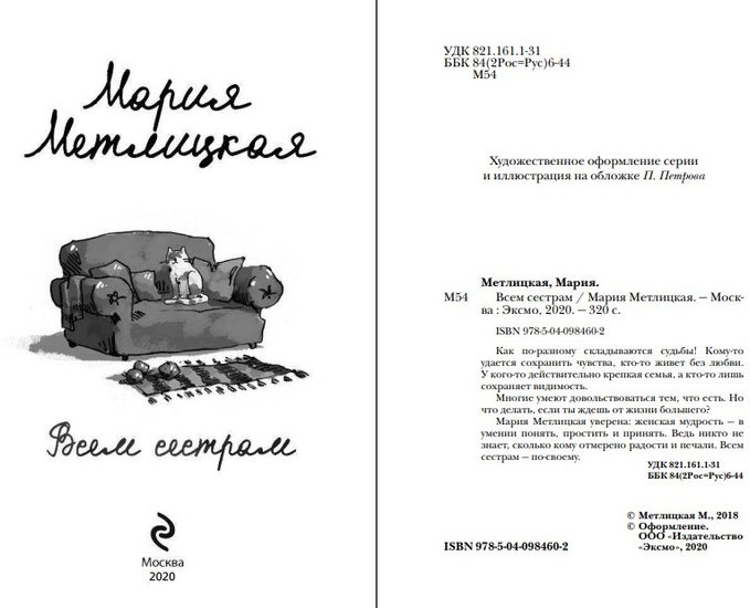 Как по-разному складываются судьбы! Кому-то удается сохранить чувства, кто-то живет без любви. У кого-то действительно крепкая семья, а кто-то лишь сохраняет видимость.Многие умеют довольствоваться тем, что есть. Но что делать, если ты ждешь от жизни большего?Мария Метлицкая уверена: женская мудрость — в умении понять, простить и принять. Ведь никто не знает, сколько кому отмеряно радости и печали. Всем сестрам — по-своему.Как по-разному складываются судьбы! Кому-то удается сохранить чувства, кто-то живет без любви. У кого-то действительно крепкая семья, а кто-то лишь сохраняет видимость.Многие умеют довольствоваться тем, что есть. Но что делать, если ты ждешь от жизни большего?Мария Метлицкая уверена: женская мудрость — в умении понять, простить и принять. Ведь никто не знает, сколько кому отмеряно радости и печали. Всем сестрам — по-своему.