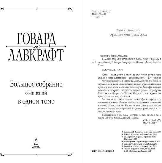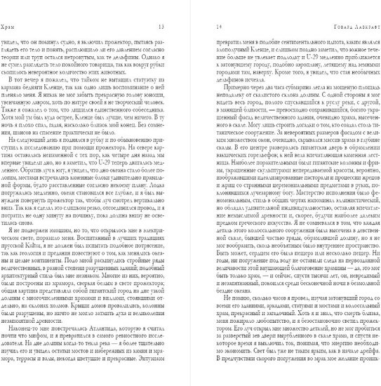 Добро пожаловать в мир Г.Ф. Лавкрафта! В нём вы окунётесь в атмосферу беспредельного ужаса перед неведомыми силами и почувствуете трепет прикосновения к сверхъестественному.Имя Говарда Филлипса Лавкрафта прогремело на весь мир, как эталон литературы ужаса. Фигура писателя окружена покровом домыслов, мифов и загадок. И действительно, чтобы создать свою вселенную, свой мир, разительно отличающийся от реального, надо было обладать неукротимой фантазией и смелостью безумца. При чтении его творений не покидает ощущение, что Зазеркалье совсем рядом, стоит только сделать один шаг, и ты очутишься в неведомом и жутком мире...Лавкрафт смешал обыденную действительность и вселенский кошмар, показал столкновение простого человека с непостижимыми, а порой и смертельно опасными созданиями. Дагон, Ктулху, Йог-Сотот и многие другие темные божества, придуманные им в 1920-е годы, приобрели впоследствии такую популярность, что сотни творцов фантастики, включая Нила Геймана и Стивена Кинга, до сих пор продолжают расширять его мифологию. Из последнего в 2022 году вышел сериал «Кабинет редкостей Гильермо дель Торо», где два эпизода основаны на рассказах Лавкрафта.В сборник вошли как самые известные рассказы писателя, так и многие давно не переиздававшиеся рассказы.Добро пожаловать в мир Г.Ф. Лавкрафта! В нём вы окунётесь в атмосферу беспредельного ужаса перед неведомыми силами и почувствуете трепет прикосновения к сверхъестественному.Имя Говарда Филлипса Лавкрафта прогремело на весь мир, как эталон литературы ужаса. Фигура писателя окружена покровом домыслов, мифов и загадок. И действительно, чтобы создать свою вселенную, свой мир, разительно отличающийся от реального, надо было обладать неукротимой фантазией и смелостью безумца. При чтении его творений не покидает ощущение, что Зазеркалье совсем рядом, стоит только сделать один шаг, и ты очутишься в неведомом и жутком мире...Лавкрафт смешал обыденную действительность и вселенский кошмар, показал столкновение простого человека с непостижимыми, а порой и смертельно опасными созданиями. Дагон, Ктулху, Йог-Сотот и многие другие темные божества, придуманные им в 1920-е годы, приобрели впоследствии такую популярность, что сотни творцов фантастики, включая Нила Геймана и Стивена Кинга, до сих пор продолжают расширять его мифологию. Из последнего в 2022 году вышел сериал «Кабинет редкостей Гильермо дель Торо», где два эпизода основаны на рассказах Лавкрафта.В сборник вошли как самые известные рассказы писателя, так и многие давно не переиздававшиеся рассказы.