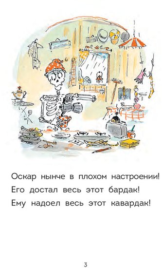 - Оскар — это скелет. И он весь состоит из костей. У Оскара есть друг — маленький песик Карос, который очень любит играть и баловаться. Из-за этого в доме творится настоящий бардак! В конце концов Оскару это надоедает. Разозлившись, скелет пишет другу записку и ненадолго уходит. Оставшись в фургончике один, пёсик начинает баловаться и нечаянно выливает на записку варенье. Некоторые слова стерлись, но кое-что еще можно разобрать. Карос читает, а потом устраивает еще больший кавардак…Серию составляют три веселые и добрые книги о дружбе скелета и песика. Это третья история. Оскар — это скелет. И он весь состоит из костей. У Оскара есть друг — маленький песик Карос, который очень любит играть и баловаться. Из-за этого в доме творится настоящий бардак! В конце концов Оскару это надоедает. Разозлившись, скелет пишет другу записку и ненадолго уходит. Оставшись в фургончике один, пёсик начинает баловаться и нечаянно выливает на записку варенье. Некоторые слова стерлись, но кое-что еще можно разобрать. Карос читает, а потом устраивает еще больший кавардак…Серию составляют три веселые и добрые книги о дружбе скелета и песика. Это третья история.