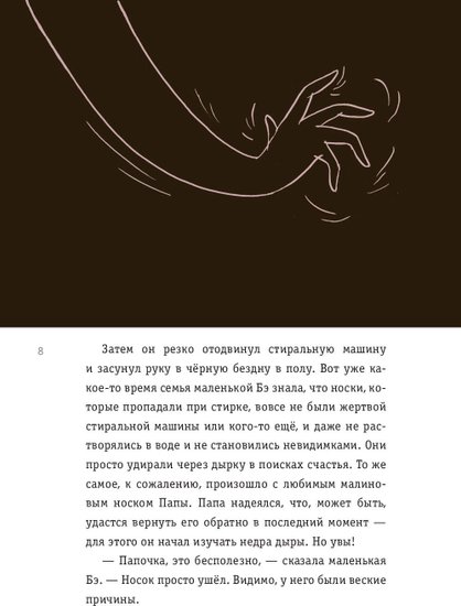 Вы уже знаете, куда исчезают носки? Да-да, они удирают в дырку под стиральной машиной и попадают в тот самый волшебный коридор. Здесь вы найдёте ещё тринадцать историй о непоседливых носках, которые не готовы всю жизнь просидеть в корзине с грязным бельём. Герои книги пускаются навстречу приключениям и берут судьбу в свои руки (или всё же ноги?). Благодаря смелости и настойчивости носки изменяют не только свою жизнь, но и мир вокруг, помогают другим стать счастливыми. А это именно то, к чему стоит стремиться каждому, неважно, человек ты или носок.Вы уже знаете, куда исчезают носки? Да-да, они удирают в дырку под стиральной машиной и попадают в тот самый волшебный коридор. Здесь вы найдёте ещё тринадцать историй о непоседливых носках, которые не готовы всю жизнь просидеть в корзине с грязным бельём. Герои книги пускаются навстречу приключениям и берут судьбу в свои руки (или всё же ноги?). Благодаря смелости и настойчивости носки изменяют не только свою жизнь, но и мир вокруг, помогают другим стать счастливыми. А это именно то, к чему стоит стремиться каждому, неважно, человек ты или носок.
