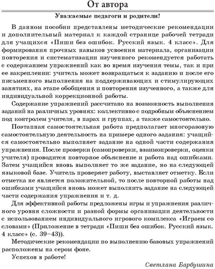Методические рекомендации. Русский язык 4 класс (Барбушина С.Г.)