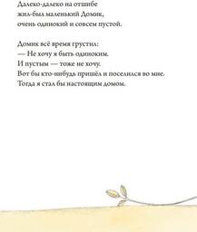 Маленькому Домику грустно быть совсем одному, без жильцов... Поэтому он отправляется на поиски друга и не колеблясь готов измениться, чтобы понравиться собаке, рыбе, птице — хоть кому-нибудь. Но у всех уже есть дом.Удастся ли нашему Домику найти себе жильца и друга? Открой дверь — и узнаешь!Маленькому Домику грустно быть совсем одному, без жильцов... Поэтому он отправляется на поиски друга и не колеблясь готов измениться, чтобы понравиться собаке, рыбе, птице — хоть кому-нибудь. Но у всех уже есть дом.Удастся ли нашему Домику найти себе жильца и друга? Открой дверь — и узнаешь!
