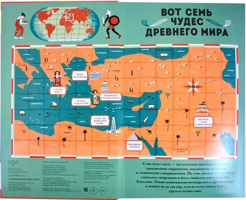 Эта волшебная книга расскажет о знаменитых сооружениях прошлого, из которых до нашего времени сохранилась только пирамида Хеопса.Вы узнаете, как жили строители в Древнем Египте, зачем в бассейн перед статуей Зевса наливали оливковое масло, сколько колонн было в храме Артемиды, почему упавшего Колосса Родосского не стали поднимать, хотя до этого он простоял всего 54 года, и еще много всего интересного.А в чем же волшебство? С технологией pop-up все семь чудес света предстанут в объёме, как будто их у вас на глазах возвели древние зодчие.Как читать эту книгу:сначала родители могут сами ознакомиться с текстом книги, затем изучить книгу вместе с ребенком;можно предложить юному читателю придумать свою историю к каждому чуду света;используйте pop-up элементы в качестве декораций для игры с мелкими игрушками.Эта волшебная книга расскажет о знаменитых сооружениях прошлого, из которых до нашего времени сохранилась только пирамида Хеопса.Вы узнаете, как жили строители в Древнем Египте, зачем в бассейн перед статуей Зевса наливали оливковое масло, сколько колонн было в храме Артемиды, почему упавшего Колосса Родосского не стали поднимать, хотя до этого он простоял всего 54 года, и еще много всего интересного.А в чем же волшебство? С технологией pop-up все семь чудес света предстанут в объёме, как будто их у вас на глазах возвели древние зодчие.Как читать эту книгу:сначала родители могут сами ознакомиться с текстом книги, затем изучить книгу вместе с ребенком;можно предложить юному читателю придумать свою историю к каждому чуду света;используйте pop-up элементы в качестве декораций для игры с мелкими игрушками.