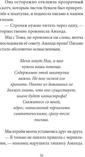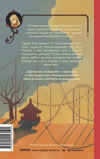 Третья книга детективной серии с загадками и головоломками, проданной во Франции суммарным тиражом более 30 тысяч экземпляров.Оливье, Тома и Аманда ведут видеоблог об исторических тайнах и собственных расследованиях. Однажды им приходит таинственное письмо от подписчика: мальчик по имени Ноа умоляет о помощи…Что скрывает таинственная рукопись, которую так бережно хранил отец Ноа — автор квестов по охоте за сокровищами? И почему тетя Ноа так мечтает заполучить эту книгу? За ответами герои отправятся в Париж — в огромный парк развлечений.Третья книга детективной серии с загадками и головоломками, проданной во Франции суммарным тиражом более 30 тысяч экземпляров.Оливье, Тома и Аманда ведут видеоблог об исторических тайнах и собственных расследованиях. Однажды им приходит таинственное письмо от подписчика: мальчик по имени Ноа умоляет о помощи…Что скрывает таинственная рукопись, которую так бережно хранил отец Ноа — автор квестов по охоте за сокровищами? И почему тетя Ноа так мечтает заполучить эту книгу? За ответами герои отправятся в Париж — в огромный парк развлечений.