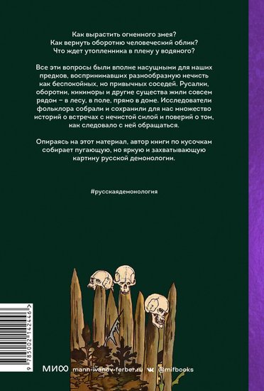 Как вырастить огненного змея? Как вернуть оборотню человеческий облик? Что ждет утопленника в плену у водяного?Эти вопросы были насущными для наших предков, воспринимавших разнообразную нечисть как беспокойных, но привычных соседей. Русалки, оборотни, кикиморы и другие существа жили совсем рядом — в лесу, в поле, прямо в доме. Исследователи фольклора собрали и сохранили для нас множество историй о встречах с нечистой силой и поверий о том, как следовало с ней обращаться.Опираясь на этот материал, автор книги по кусочкам собирает пугающую, но яркую и захватывающую картину русской демонологии.Как вырастить огненного змея? Как вернуть оборотню человеческий облик? Что ждет утопленника в плену у водяного?Эти вопросы были насущными для наших предков, воспринимавших разнообразную нечисть как беспокойных, но привычных соседей. Русалки, оборотни, кикиморы и другие существа жили совсем рядом — в лесу, в поле, прямо в доме. Исследователи фольклора собрали и сохранили для нас множество историй о встречах с нечистой силой и поверий о том, как следовало с ней обращаться.Опираясь на этот материал, автор книги по кусочкам собирает пугающую, но яркую и захватывающую картину русской демонологии.