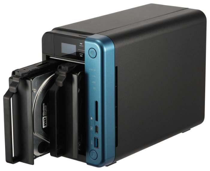 сетевой накопитель (NAS), 2 гигабитных LAN-порта, 2 места для HDD 2.5"/3.5", 4-ядерный процессор Intel Celeron, 1500 МГц, 8 Гб оперативной памяти DDR3, HDMI-выход