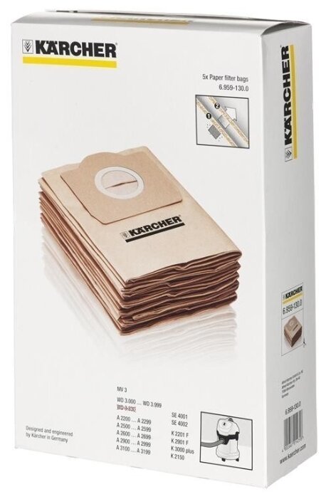 Количество в комплекте:5 шт. производитель пылесоса: KARCHER сменный пылесборник материал: бумага