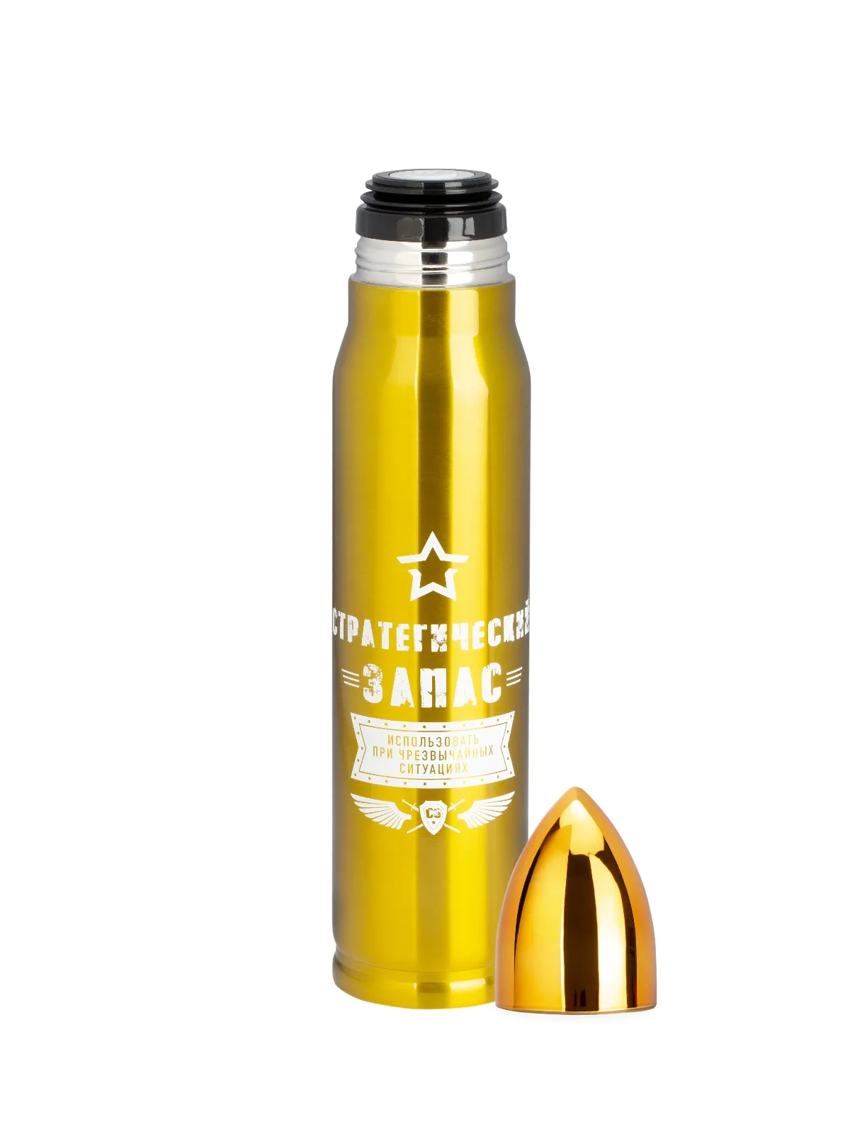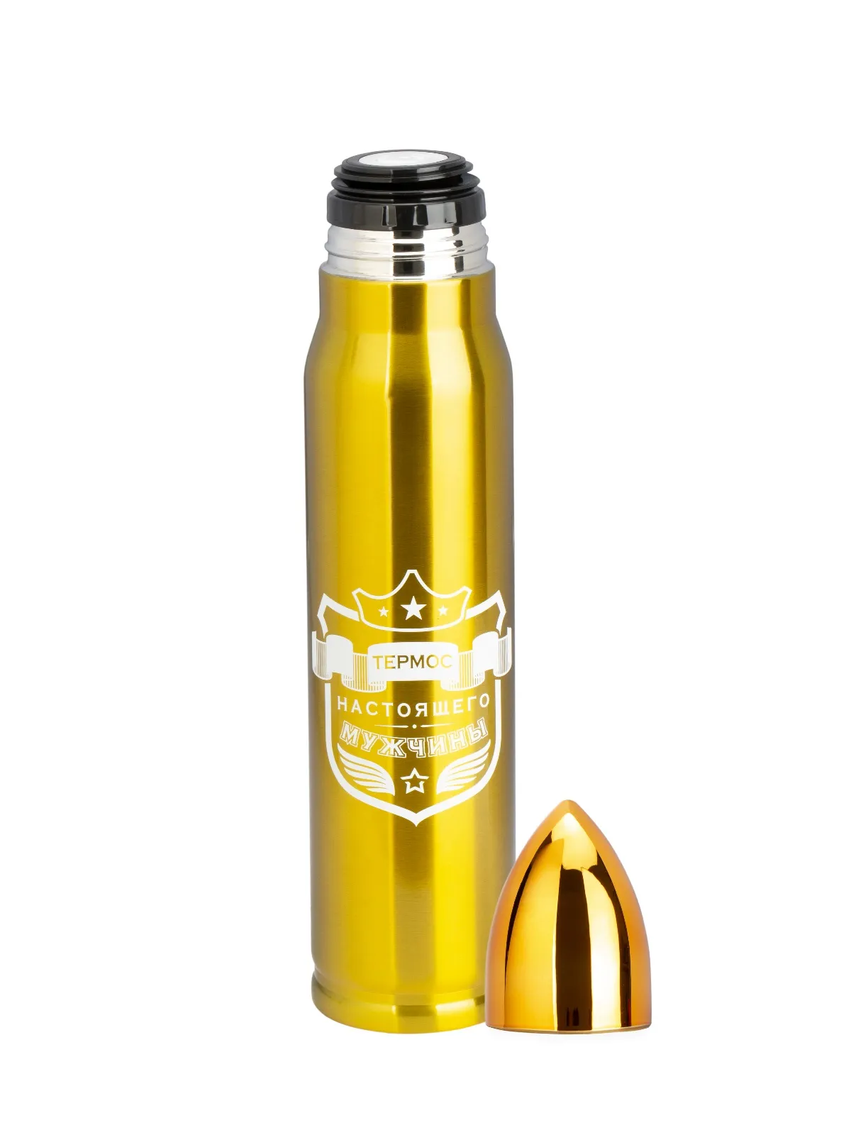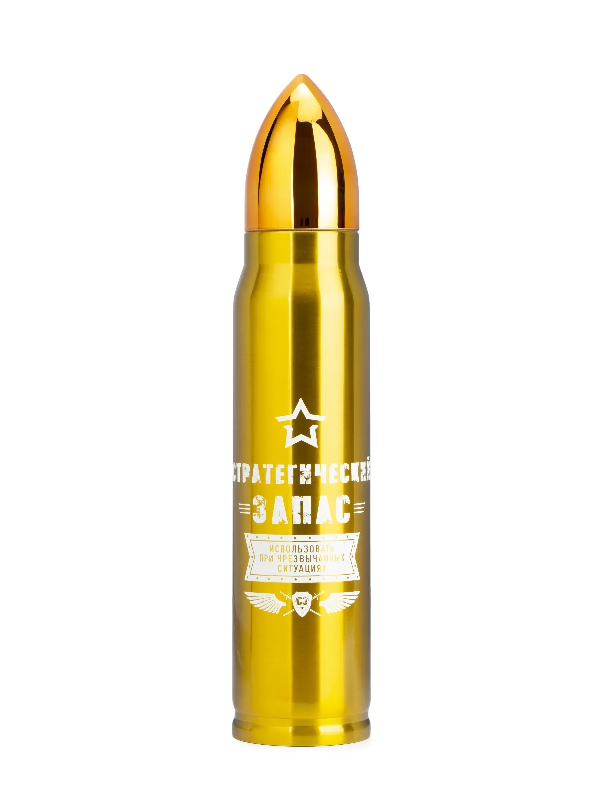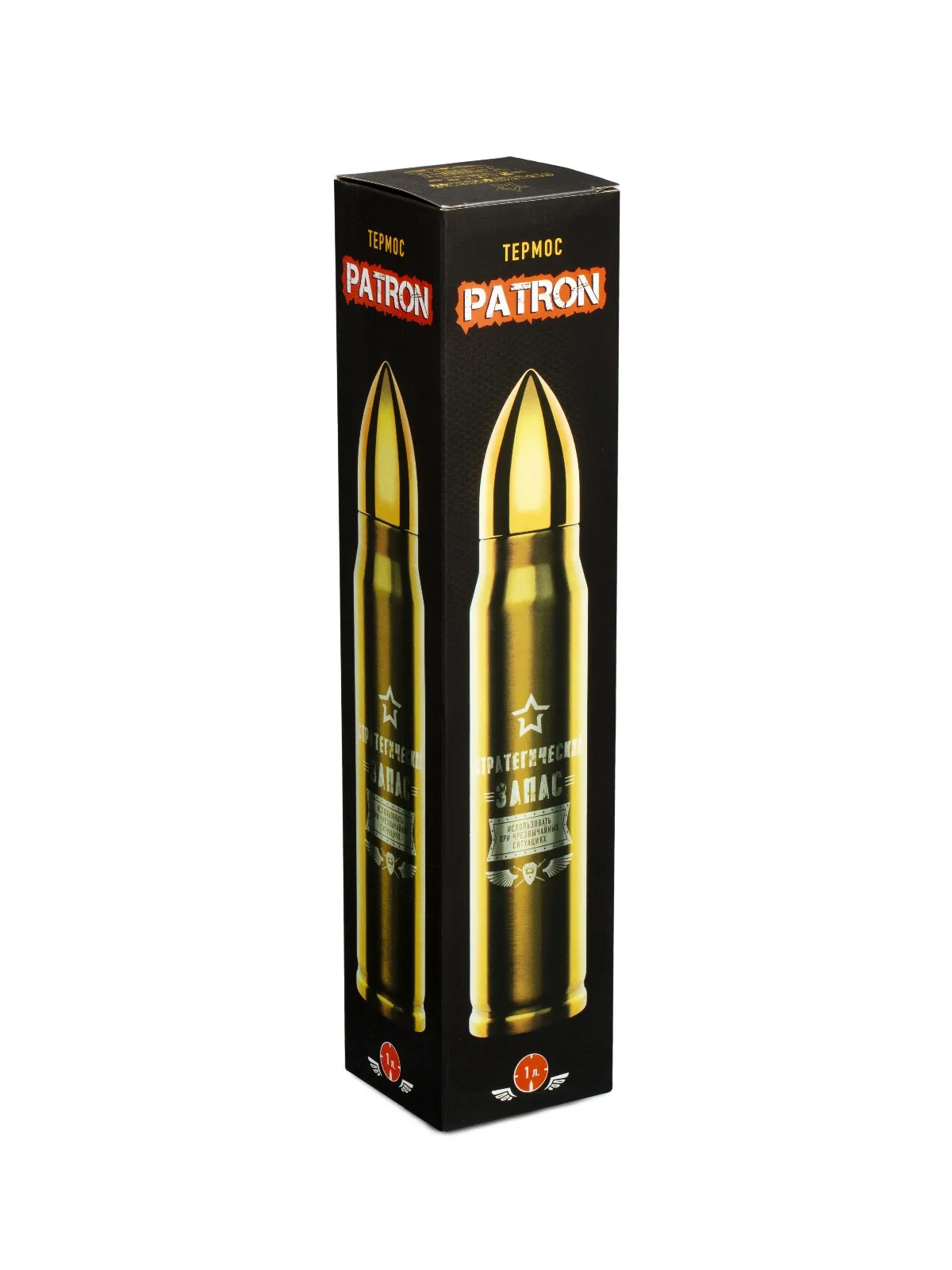 Термос подарочный Патрон предназначен для хранения горячих и холодных напитков. Снаружи и внутри термос изготовлен из высококачественной нержавеющей стали с вакуумной теплоизоляцией между колбой и корпусом. Термос обеспечен герметичной крышкой с теплоизоляционным материалом. Любители путешествий и активного отдыха оценят все преимущества термоса.Вес 593 гр. Материал сталь нержавеющая, пластмасса. Страна производства Китай. Высота, см 37. Длина, см 7. Ширина, см 7. Внимание! Товар представлен в нескольких цветах, без возможности выбора. Цена указана за 1 шт.