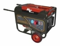 трёхфазный (380/220 вольт) мощность 6 кВт, максимальная 6.50 кВт электрический, ручной запуск воздушное охлаждение Автономность 8 ч колёса вес 85 кг