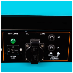однофазный (220 вольт) мощность 850 Вт, максимальная 1 кВт ручной запуск воздушное охлаждение 1 розетка 12В, 1 розетка 220В Автономность 14 ч вес 25 кг
