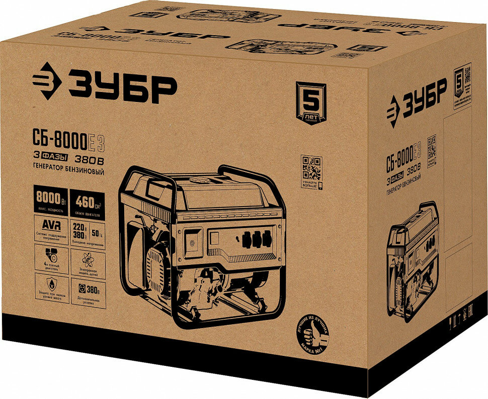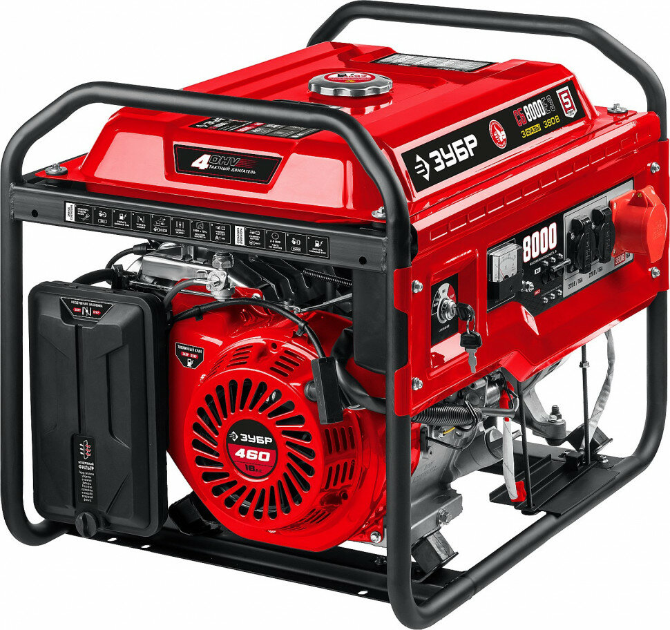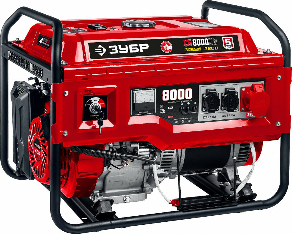 бензиновый генератор с электростартером, 8000 Вт, 380 В Зубр