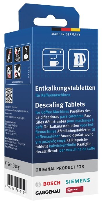 форма выпуска: таблетки для удаления накипи производитель кофеварки/кофемашины: Bosch