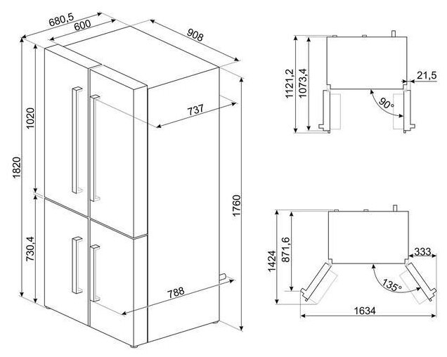 ШхВхГ: 90.80х182х68 см класс энергопотребления A+ No Frost общий объем 626 л мощность замораживания 8 кг/сутки
