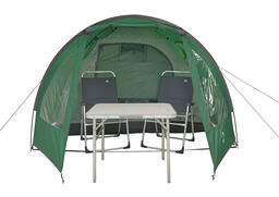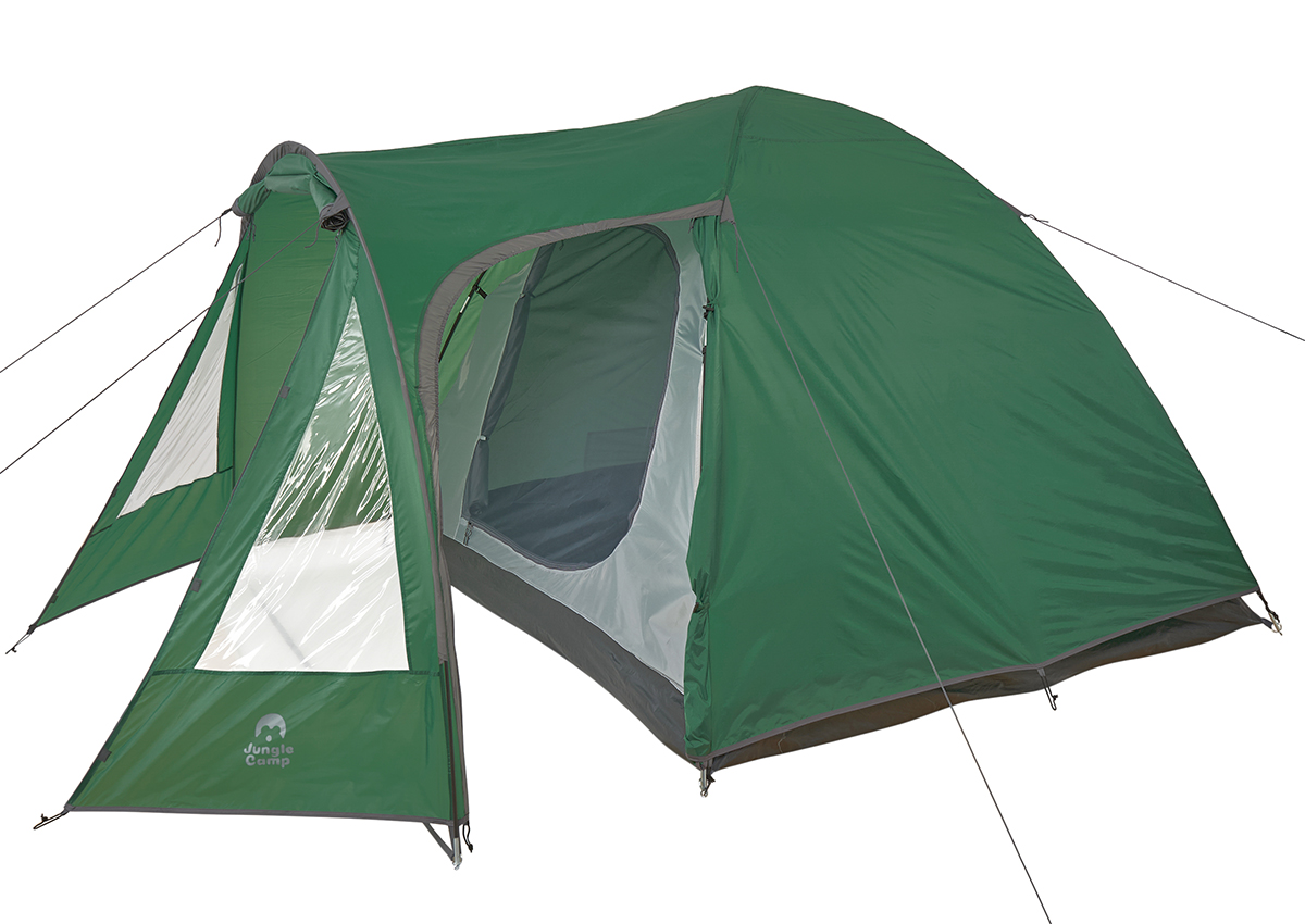 Пятиместная кемпинговая высокая палатка Jungle Camp Texas 5 с хорошей вентиляцией и большим светлым тамбуром - это отличный выбор для любителей туризма, кемпинга выходного дня, отдыха на природе с семьей, рыбалки с ночевкой. Самая доступная среди больших кемпинговых палаток! Большой высокий тамбур с двумя входами позволяет удобно организовать пространство и не только хранить там вещи, но и поставить кемпинговую мебель и в непогоду приготовить чай или еду, не выходя из палатки. Два больших окна улучшают обзорность и освещенность в тамбуре. Внешний тент палатки из полиэстера с пропиткой PU водостойкостью 2000 мм и проклеенными швами гарантирует защиту от дождя и ветра. Внутренняя палатка выполнена из «дышащего» полиэстера, что препятствует оседанию конденсата на стенках спального помещения, а также хорошо проветриваются благодаря москитной сетке в полный размер двери и большому вентиляционному окну. Для организации пространства внутри палатки предусмотрены карманы для мелочей и крючок для подвешивания фонаря.