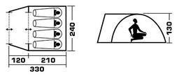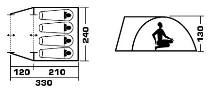 внешние размеры (ДхШхВ) 330х240х130 cм