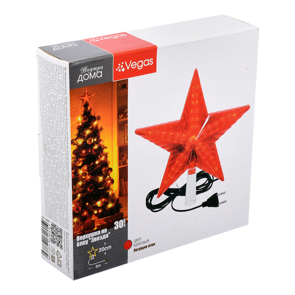 Верхушка на елку "Звезда" красная, 30 LED ламп 55086