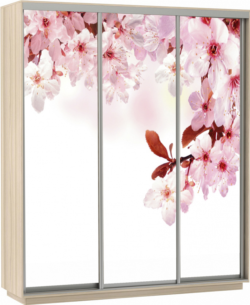 Шкаф-купе E1 Экспресс Фото Трио Ясень Шимо светлый Сакура 2200x2400x600 без модуля