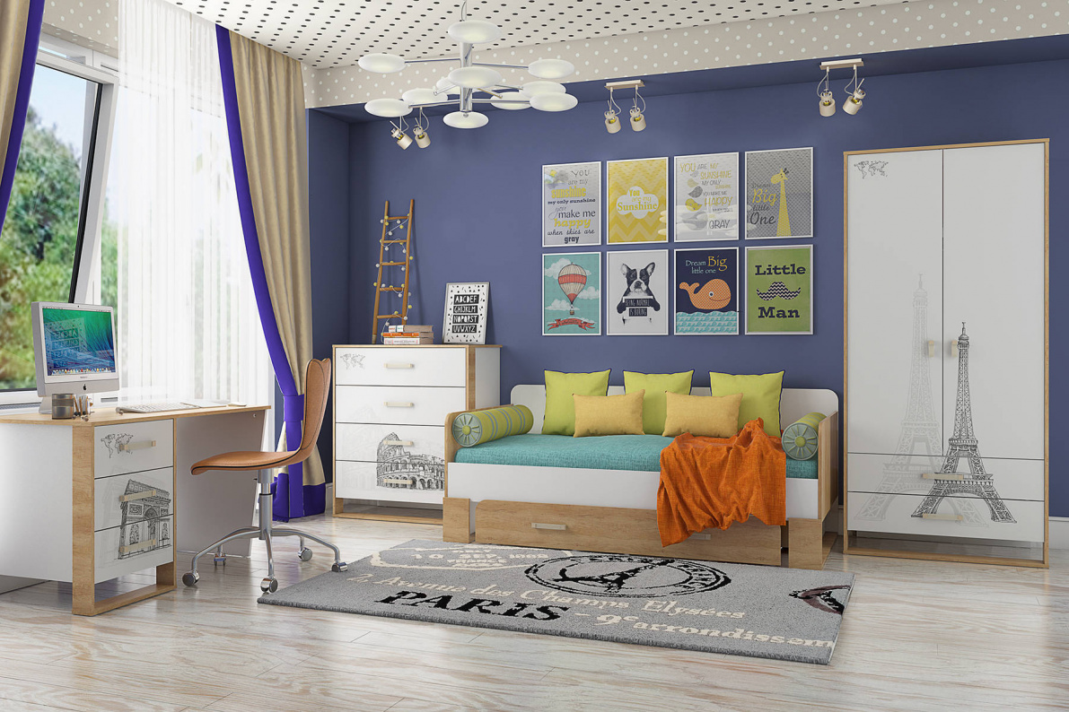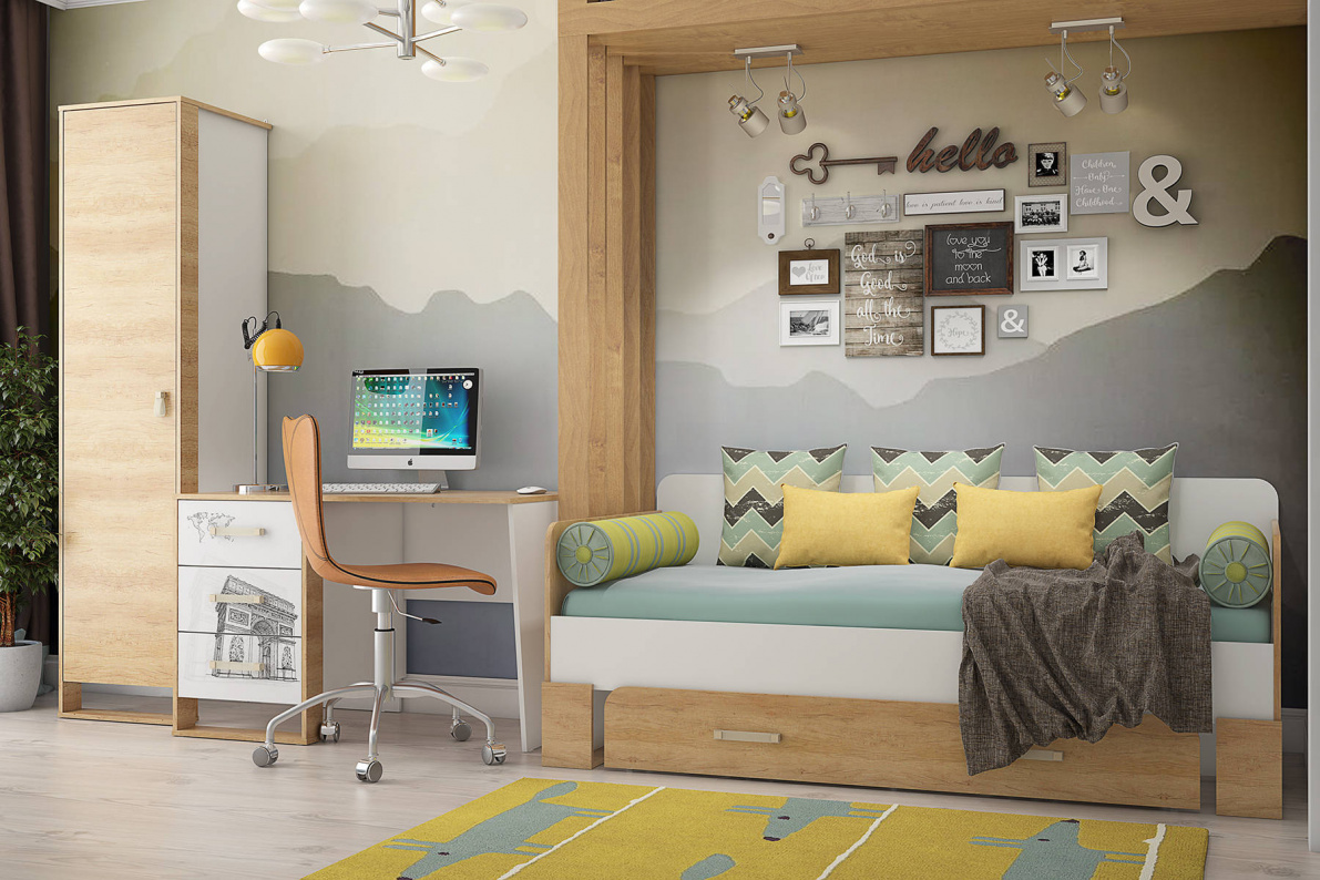 Сити СТЛ.336.08 Шкаф 1 дв. Бело-серый/Дуб небраска
