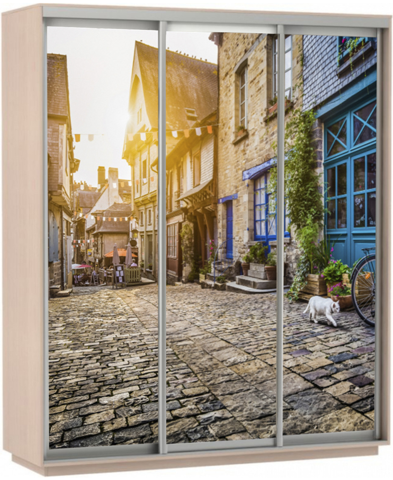 Шкаф-купе E1 Экспресс Фото Трио Дуб молочный Улица 2400x2100x600 без модуля