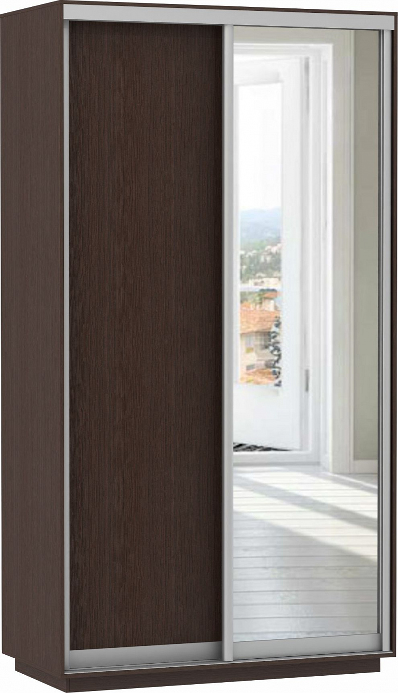 Шкаф-купе E1 Экспресс 2-дверный Медиум дуо (фасад зеркало) Венге 2400x1400x600 с угловым модулем