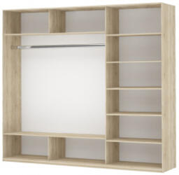 Корпус ЛДСП толщиной 16 мм, глубина корпуса без фасадов — 50 см. Двери ЛДСП толщиной 10 мм. Кромка ПВХ. Полкодержатели-флипперы, эксцентриковые стяжки корпуса. Алюминиевые ручки. Алюминиевый ходовой профиль. Раздвижная система Hettich Top Line M производства Германии. Двери крепятся к верхней роликовой направляющей.