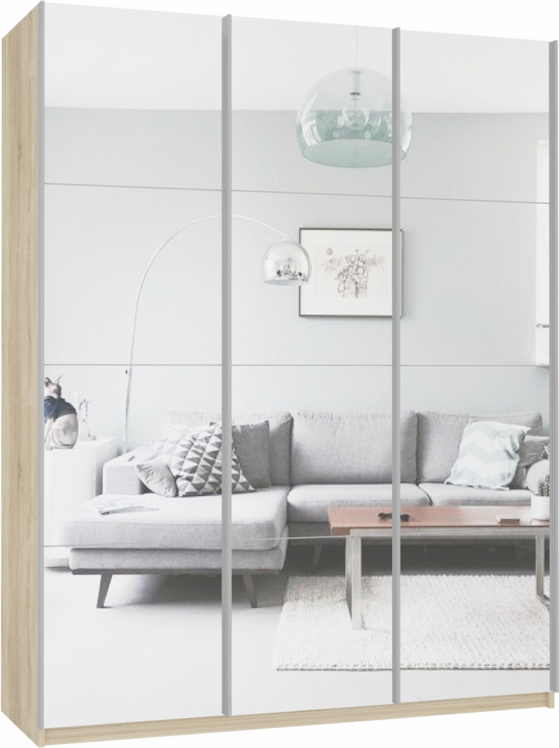 Шкаф-купе E1 Прайм 3-х дверный (фасад зеркало) Дуб сонома 2300x1800x570