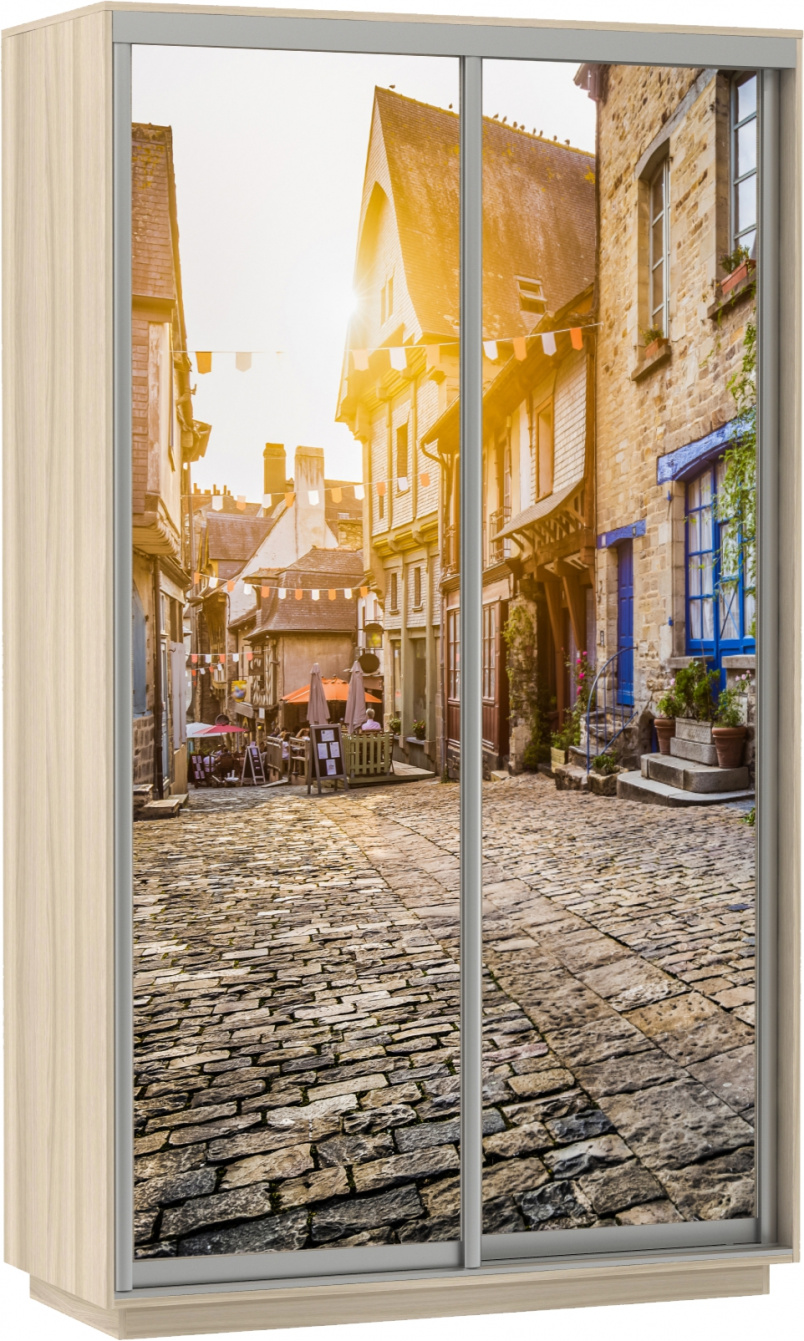 Шкаф-купе E1 Экспресс Фото дуо Дуб сонома Улица 2200x1400x600 без модуля