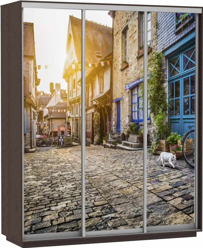 Шкаф-купе E1 Экспресс Фото Трио Венге Улица 2400x1800x600 без модуля