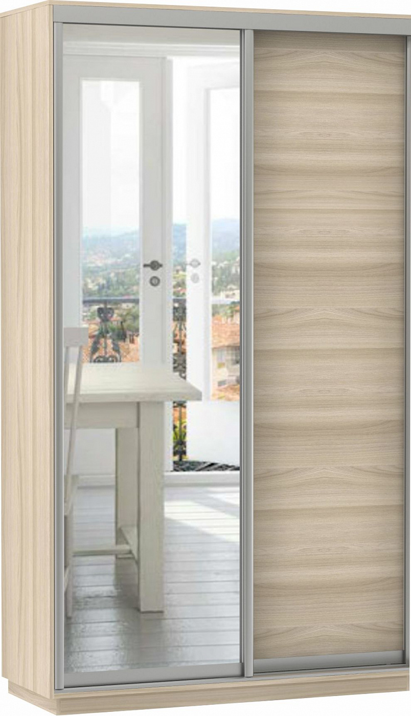Шкаф-купе E1 Экспресс 2-дверный Медиум дуо (фасад зеркало) Ясень шимо светлый 2200x1200x600 без модуля