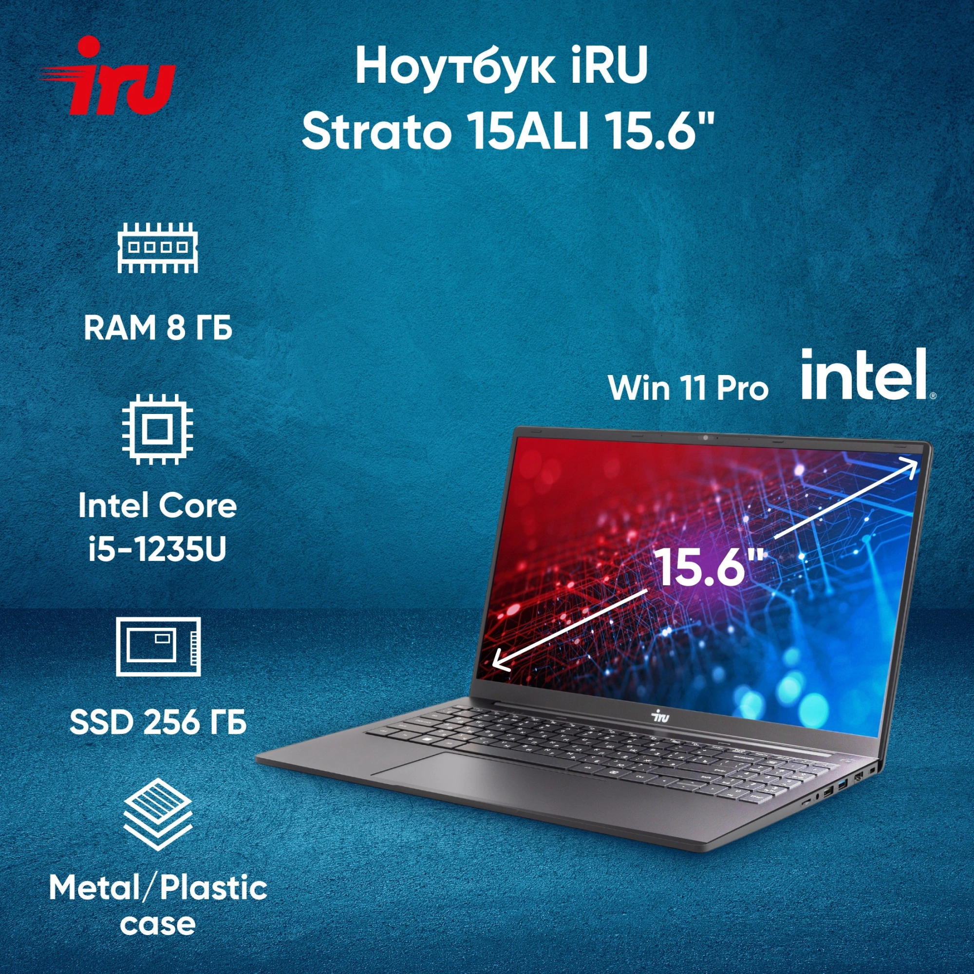 Ноутбук IRU Strato 15ALI Core i5 1235U 8Gb SSD256Gb Intel Iris Xe graphics 15.6" IPS FHD (1920x1080) Windows 11 Pro Multi Language 64 black WiFi BT Cam 6000mAh (2059113)
