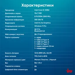 • Процессор Intel Core i5 1235U 1.3ГГц