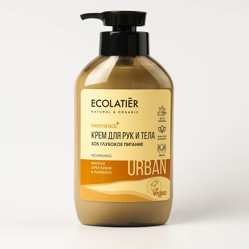 Крем для рук и тела `ECOLATIER` URBAN марула, орех кукуи & пантенол (SOS глубокое питание) 400 мл