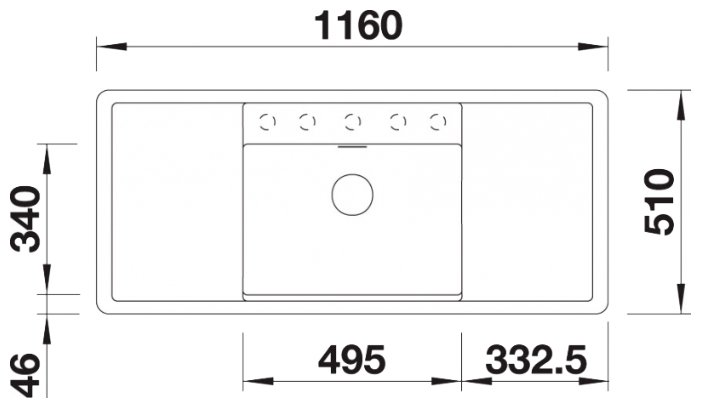 врезная кухонная мойка прямоугольная из искусственного гранита оснащена крылом крылья с обеих сторон кнопка для слива воды ШхГ 116х51 см