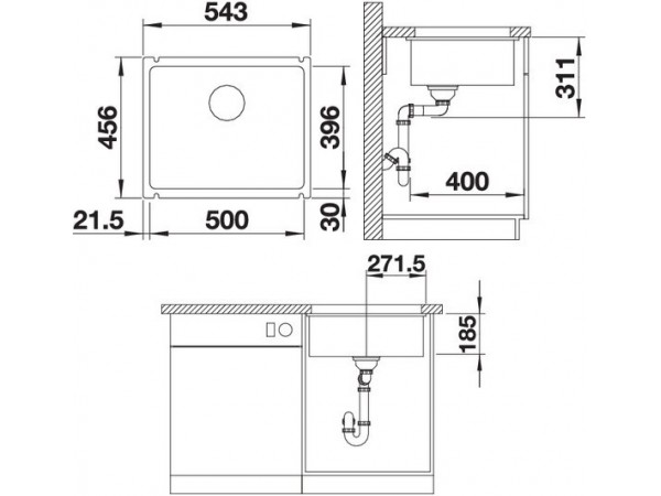 Мойка Blanco Subline 500-U керамика PuraPlus черный 523740