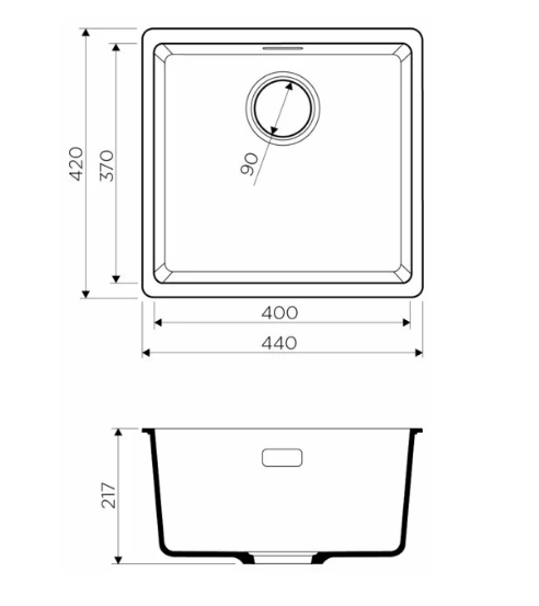 врезная кухонная мойка прямоугольная из искусственного гранита ДхШ 44х42 см