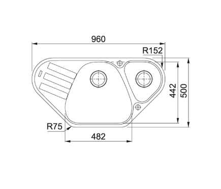 нестандартная, угловая расположение крыла: слева количество основных чаш: 1 количество дополнительных чаш: 1 диаметр сливного отверстия: 3 1/2 "